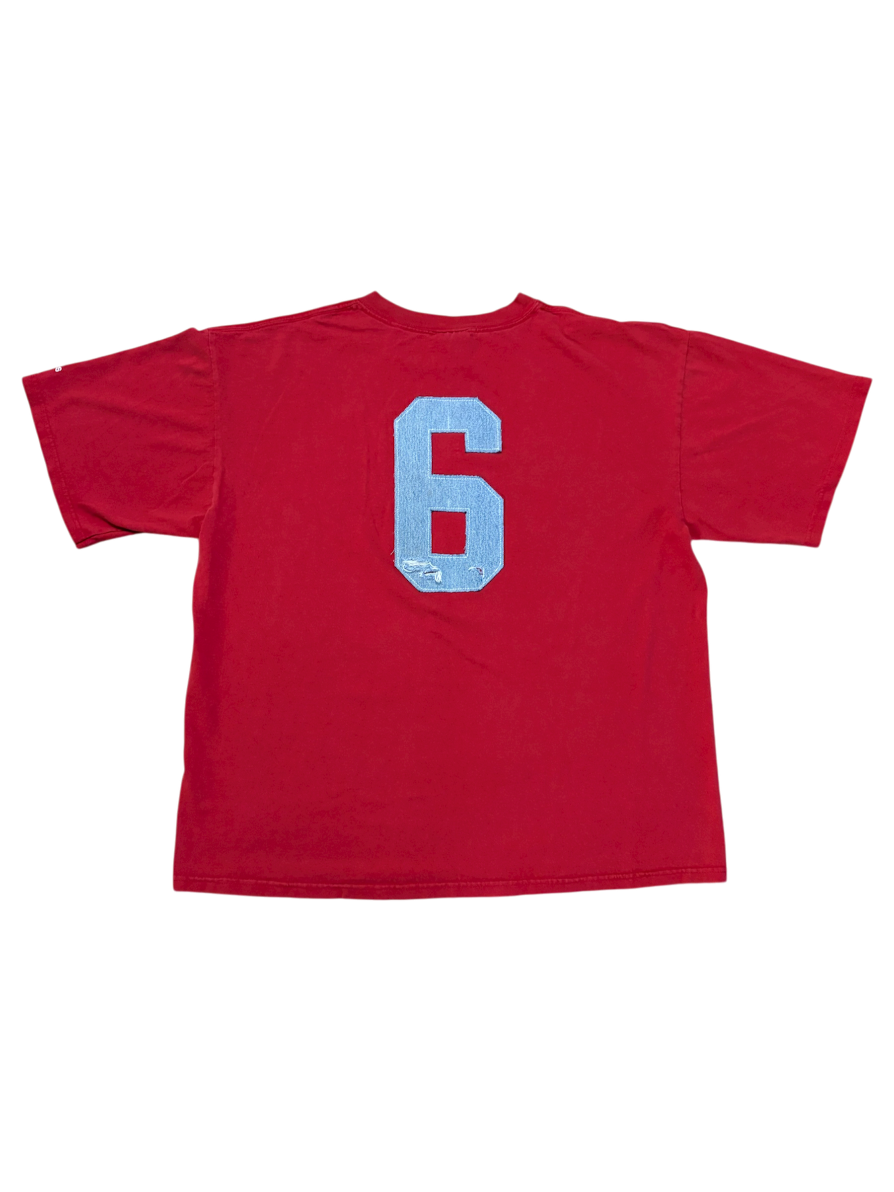 A one-of-one, hand-reworked vintage college shirt that's a new take on the classic jersey tee. Designed to feel and look "played in" the shirt features: